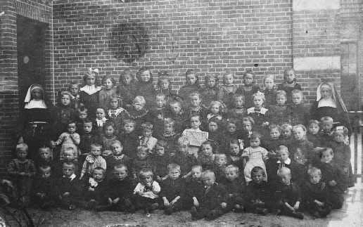 die met de Zusters meewerkten voor het welzijn der kinderen enkele uitgezonderd, die ze liever lieten verdienen, dan naar de school te sturen.